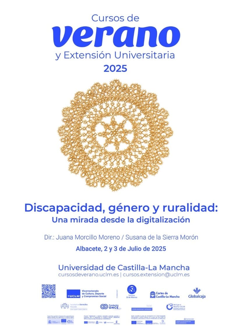 03/07/2025 Curso de verano UCLM «Discapacidad, género y ruralidad: una mirada desde la digitalización» enero 25, 2026julio 3, 2025 Cursos de Verano y Extensión Universitaria 2025 Albacete, 2 y 3 de julio de 2025Facultad de Derecho. Salón de Actos 13,45 h. Clausura y actuación musical D. Antonio Remache y D.ª Yaraví Serrano con Antonio Belmonte https://eventos.uclm.es/135472/detail/discapacidad-genero-y-ruralidad-una-mirada-desde-la-digitalizacion.html